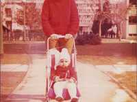 Dinka Aničić (rođena 1981.), snimljena tijekom sanjkanja s prijateljem na livadi zapadno od Kineziološkog fakulteta. U pozadini se vidi tzv. bijela zgrada u Horvaćanskoj ulici. Sanjke su se tijekom godine čuvale u ostavi u prizemlju zgrade u Ulici Rudolfa Hercigonje 17 (danas Ulica Vladimira Filakovca), gdje je živjela obitelj Aničić. S prvim snijegom djed je Dinku i njezine prijatelje vodio na sanjkanje u kvartu. Osim na spomenutoj livadi, djeca su se sanjkala i na padini pored nebodera na Selskoj cesti. Fotografija je snimljena u drugoj polovici 1980-ih godina.